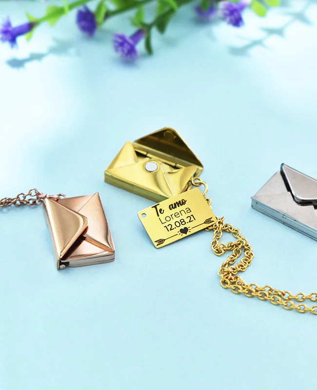 Pingente de aço inoxidável com foto personalizada e mensagem personalizada, gravação a laser, embalagem com caixa de presente